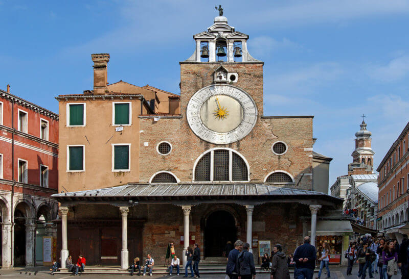 Let's continue to the square Campo San Giacomo di Rialto. There we will see Church of San Giacomo di Rialto (Chiesa di San Giacomo di Rialto). According to historians, this is the oldest church in Venice.
