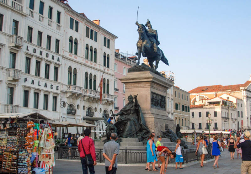 Statue of Vittorio Emanuele II riding on a horse, the first king of a united Italy has stood on the Slavic coast since 1887: