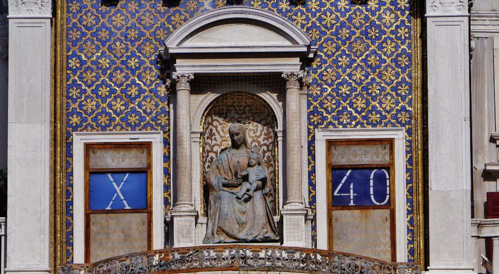 This is a five-story building. It was built in 1496-1757. The ground floor features the majestic Merceria arch(Merceria)that leads to the intricate streets of the Rialto. On the second tier there is an astrological dial made of lapis lazuli. There is a curved balcony on the third floor. It depicts the Virgin Mary and baby Jesus. Twice a year - on the Annunciation (January 6) and on the fortieth day of Easter, dolls depicting angels and the Three Wise Men appear on this balcony. On the fourth tier is the winged lion of St. Mark with a book (symbol of Venice), and on the fifth is the so-called “Moors”. These two figures are ringing the bells.