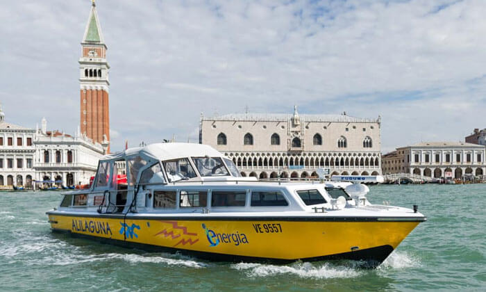 Transportation by vaporetto is carried out by the company Alilaguna. It will take you to your desired location on Venice Island. The duration of the trip is 40-75 minutes. Ticket price: one way – 15 euros, round trip – 27 euros. For detailed information, visit the official website: www.alilaguna.it/en.