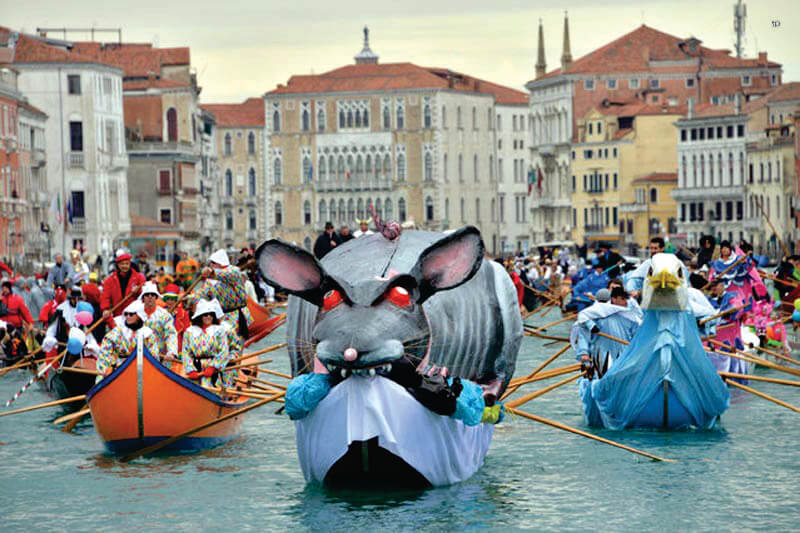 The carnival program also includes a competition for the best mask, costume and headdress, “Flight of the Donkey” - a parody of “Flight of the Eagle” (held in Mestre, in Piazza Ferretto), the “Street Show” festival (also in Piazza Ferretto), various events during the last five days of the holiday on the island of Burano, a parade of carnival floats in Margeri, a youth carnival in Zelarino.