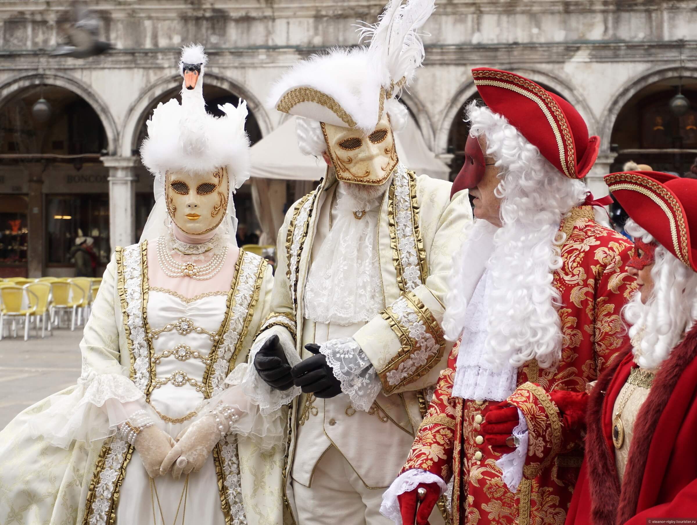 In the middle of the 16th century, during the Venice Carnival, an unusual event occurred: a Turkish acrobat managed to walk along a rope stretched from a docked ship to the bell tower of St. Mark's Cathedral. The Venetians liked this show so much that they included it in the official program with different variations. This was later developed into a winged man rapid descent using a tension rope and rope loops. Brave people received a prize from the doge - money or a gift. In 1759, this event ended tragically: the acrobat hit the ground with all his might and died. Since then they have been using wooden pigeons to fly. Since 2011, “Flight of an Angel” has been performed by last year’s winner “Maria” - a girl dressed in a luxurious dress slowly descends from the bell tower of San Marco towards the Palazzo Ducale, where she is greeted by the “Doge”. Along the way, Maria scatters candy and greets the Venetians and guests of the city, waving her arms: