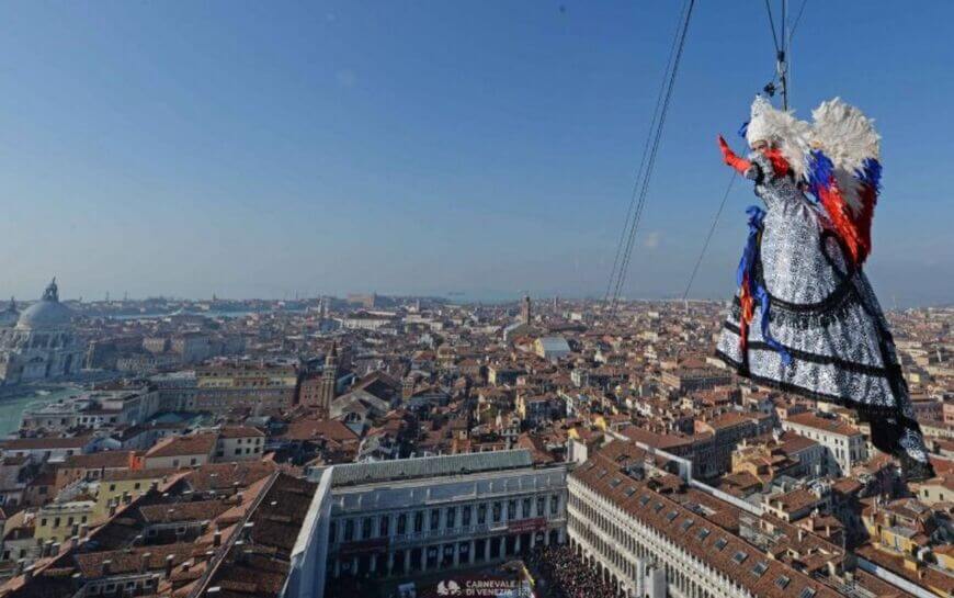 Angel's Flight is scheduled for the second Sunday of the carnival. This marks the start of the celebrations in Piazza San Marco. “The Flight of the Eagle” takes place there, but next Sunday. He was included in the program in 2012, after Maria played the role of “Flying Angels”. "Eagles" - athletes, musicians, models, entrepreneurs.