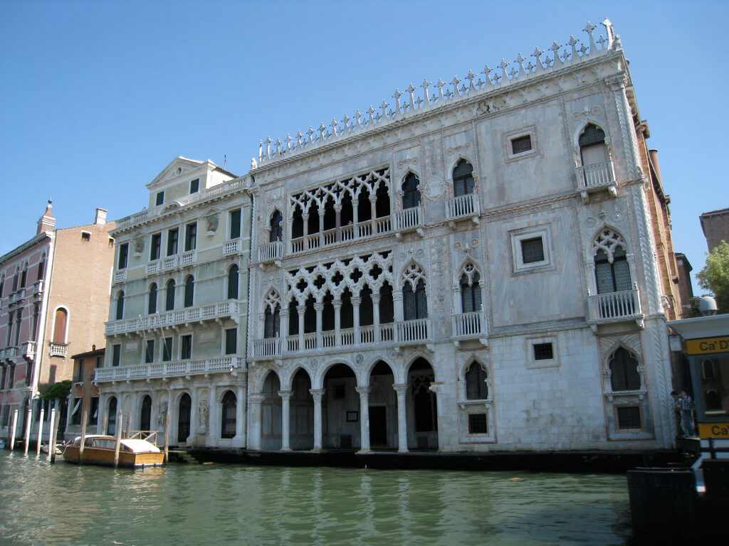 This palace is located on the Grand Canal in the Canaregio area and is considered one of the most elegant palaces. It is also called the “golden house” because initially gold leaf, as well as cinnabar and ultramarine, were used to cover it. The palace is an example of Venetian Gothic architecture. It was built in 1425-1440 according to the design of Giovanni Bona and his son Bartholomew.