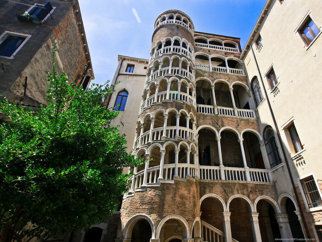 The palace was built in 1499. The Contarini family gave Venice eight doges. The building is distinguished by an openwork spiral staircase. To climb it, tourists will have to pay.