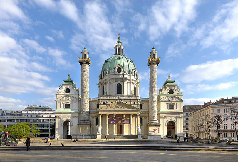 The reason for the construction of the temple was the plague epidemic of 1713. Charles VI vowed that, having gotten rid of this disaster, he would build a grandiose cathedral in the name of the heavenly patron, St. Charles (canonized Cardinal Carlo Borromeo selflessly helped the sick during the plague in Milan). Construction took place in 1716-1737. The work begun by the architect Erlach was completed by his son Joseph Erlach. Here, elements of ancient Greek, Roman, Byzantine and Islamic architecture are combined with Italian Baroque.