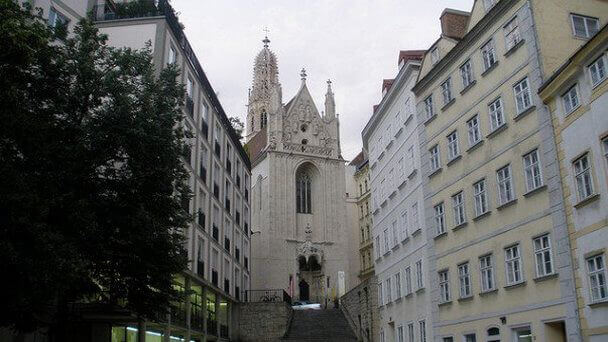 The Catholic Church Maria am Gstaad was opened in 1414 and is located in the northern part of the historical center of Vienna. This name literally means “Mary on the Shore” - the church was built on the banks of a tributary of the Danube (now the Danube Canal).