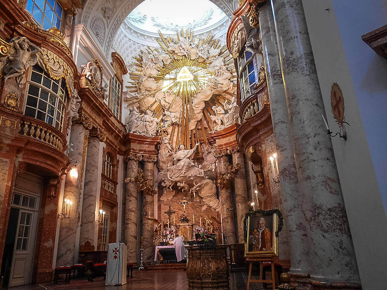 The church looks very modest from the outside, but its interior is considered by many to be the most beautiful in Vienna. Inside you will find ornate altars, gilded statues, marble columns, a pseudo-dome and much more.