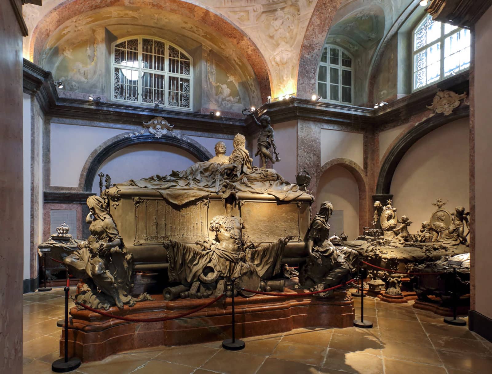 The sarcophagi and tombstones in the crypt of the emperors are arranged in chronological order.