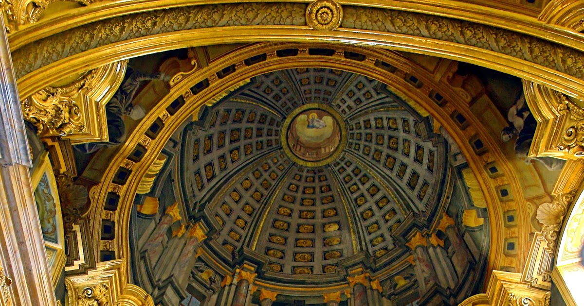 The building consists of a vestibule and an organ housed there, a 56-meter-high dome, a main altar, a pulpit, bell towers, the remains of saints, and a crypt. This is what the interior looks like: