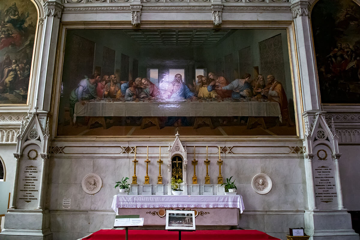 One of the main treasures of this cathedral is a mosaic copy of Leonardo da Vinci's "Last Supper", which was completed by Giacomo Raffaelli commissioned by Napoleon Bonaparte.