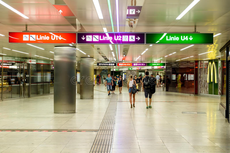 You won't get lost in the Vienna metro. It's very easy to navigate. If you don't know where the station you need is, look at the information boards that are everywhere, and then be guided by the color and name of the line. Colored glowing lines on the ceiling and floor will lead you to the corresponding metro line.