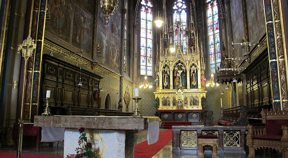 The temple belongs to the neo-Gothic style. The height of the central towers is 58-60 meters. The entrance to the basilica is decorated with an old engraving, and around it are various national symbols of the country and the traditional symbol of the Visegrad Chapter (two crossed keys). The bas-relief tells of the "last judgment". In the interior you will see beautiful panels, stained glass windows and frescoes. The walls are painted in a modern style.