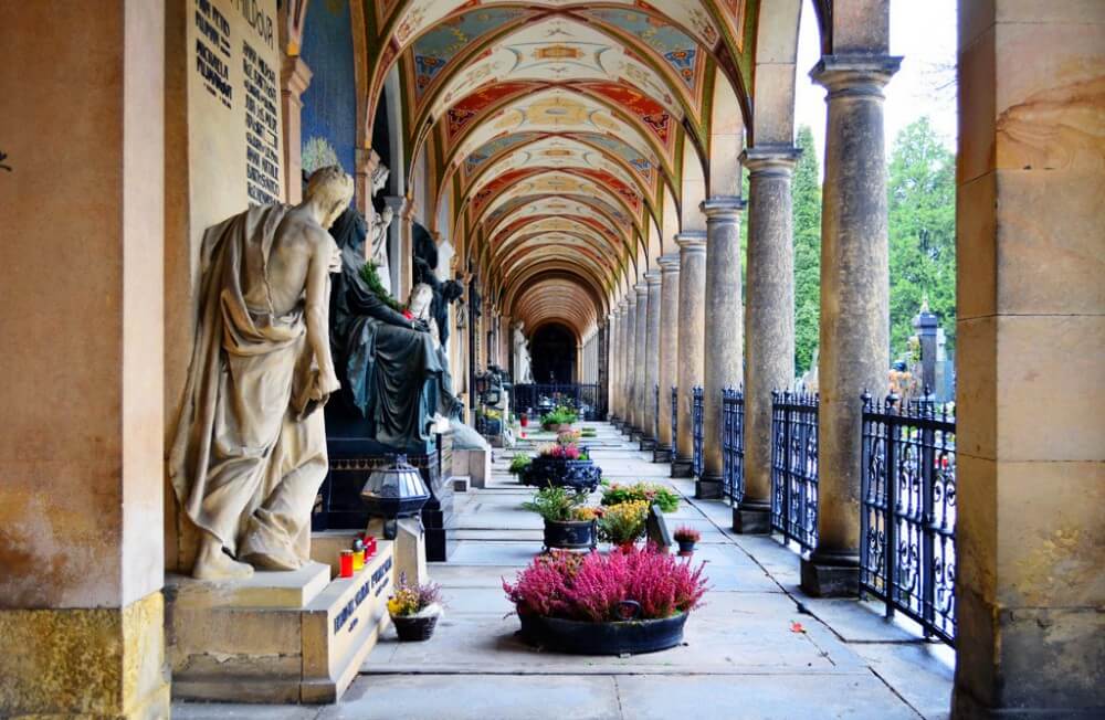Vyšehrad Cemetery is located next to the cathedral. The writer Karel Čapek, composers Bedřich Smetana, Antonín Dvořák and others are buried here.