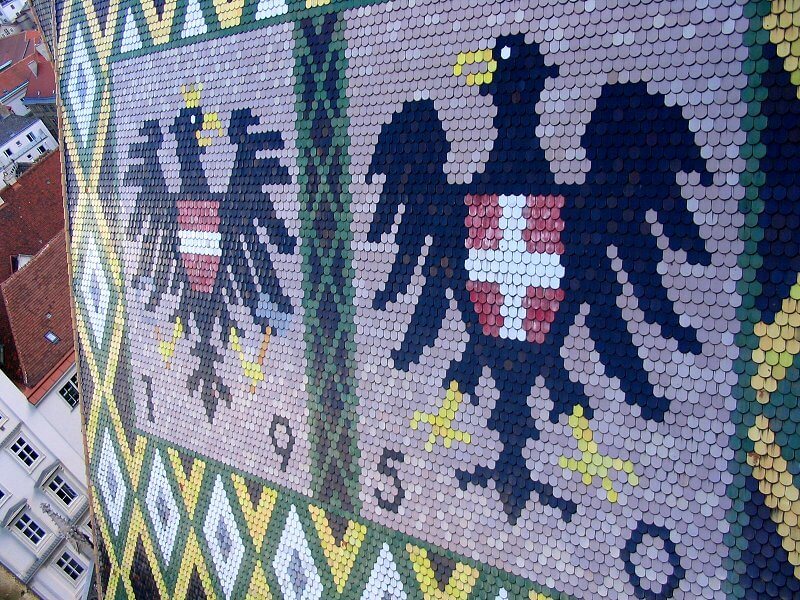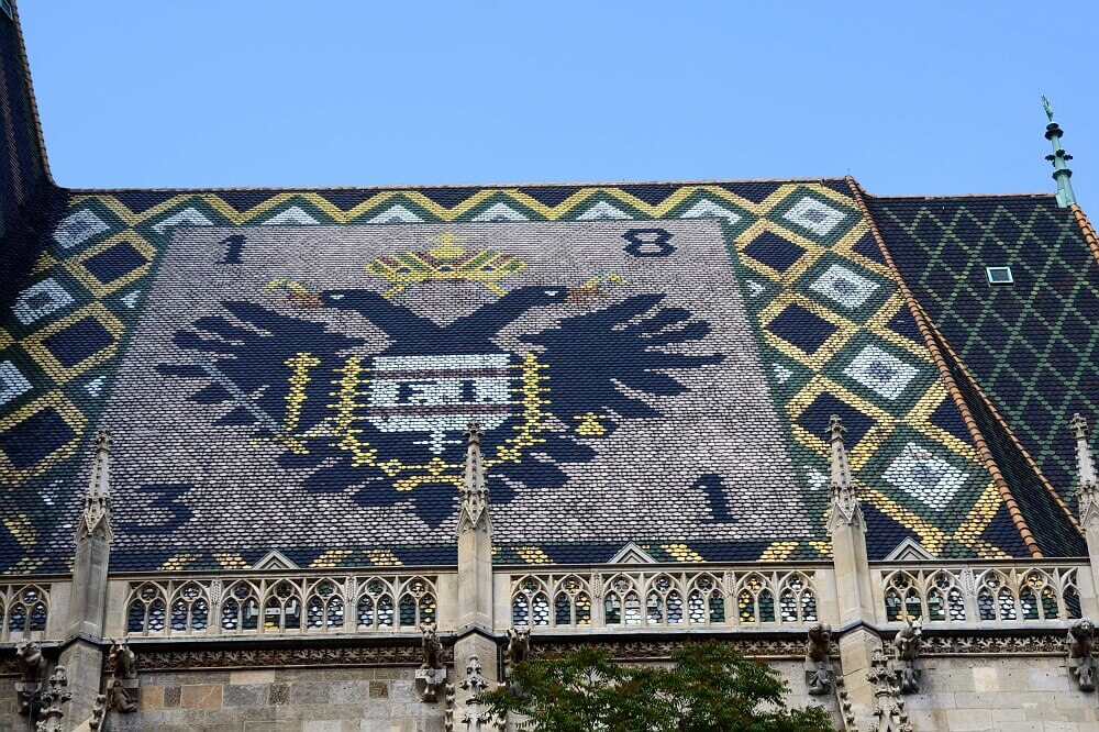 The tiled roof bears the coats of arms of Austria and Vienna.