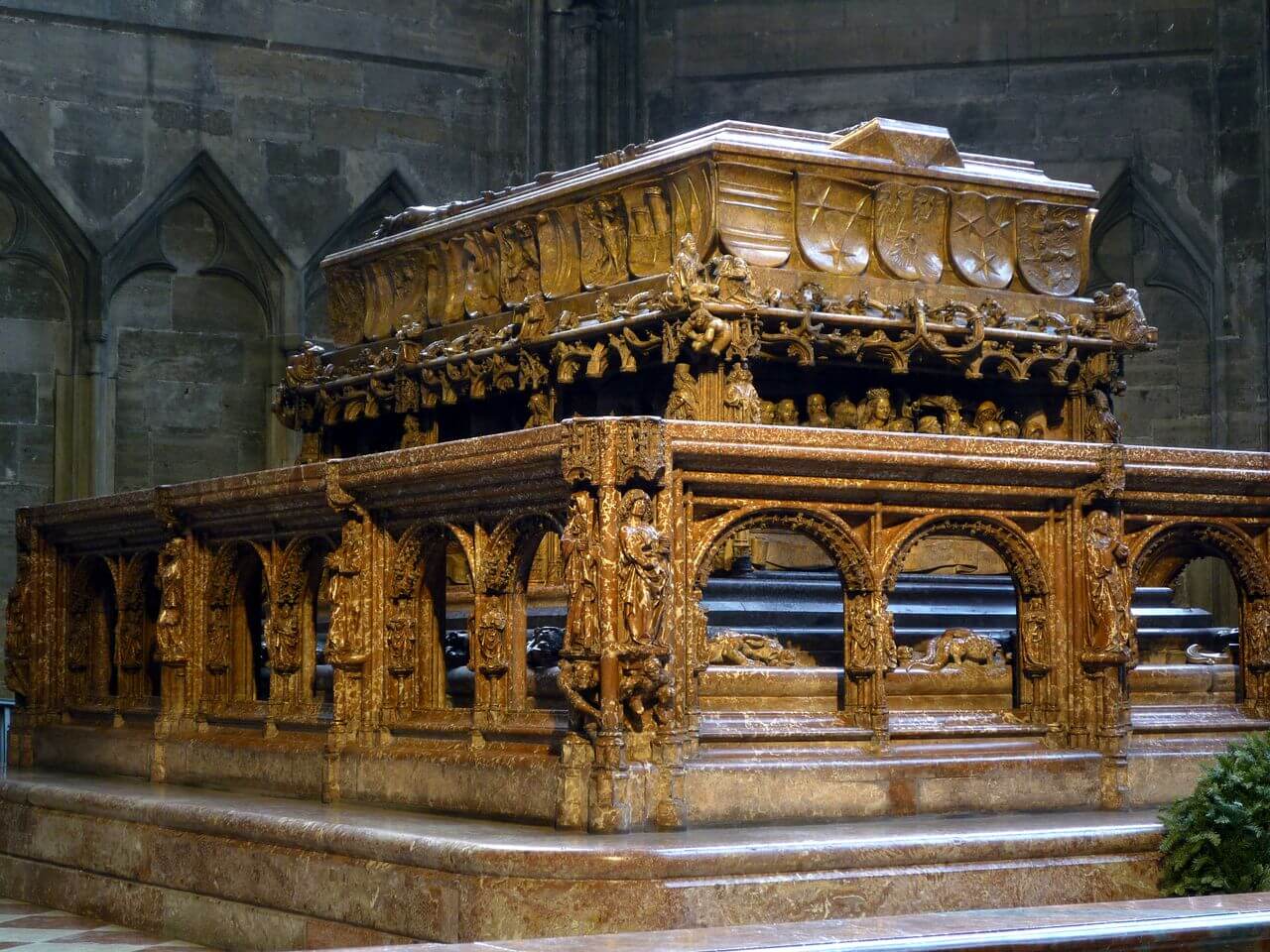 Rudolf IV - the Austrian monarch from the Habsburg dynasty, Frederick III - the Holy Emperor are buried in the cathedral Roman Empire (died 1493) Prince Eugene of Savoy - an outstanding commander (died 1736), 72 representatives of the Habsburg dynasty. Their graves are symbolic: since 1633, the internal organs of monarchs have been buried in the cathedral, their bodies in the Capuchin Church, their hearts in the Church of St. Augustine. Here is the crypt of Frederick III: