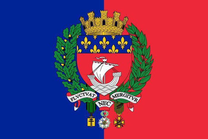 The coat of arms of Paris was first mentioned in the 12th century. It was approved by King Charles V in 1358. In the lower red part there is a silver sailboat floating in silver waves, in the upper blue part there are golden lilies, on top of which there is a crown with five towers. The coat of arms is olive green on both sides and surrounded by oak branches. At their base there is a silver ribbon with a motto in Latin: "Fluctuat nec mergitur", which means: "It rocks, but does not sink." Under the ribbon there are three orders: the Military Cross, the Order of the Legion of Honor and the Order of Liberation. The ship, which is common on the coats of arms of French coastal cities, symbolizes that Paris arose from a seaport. The golden lilies are the symbol of the Capetian dynasty, during whose reign Paris became the capital of France.